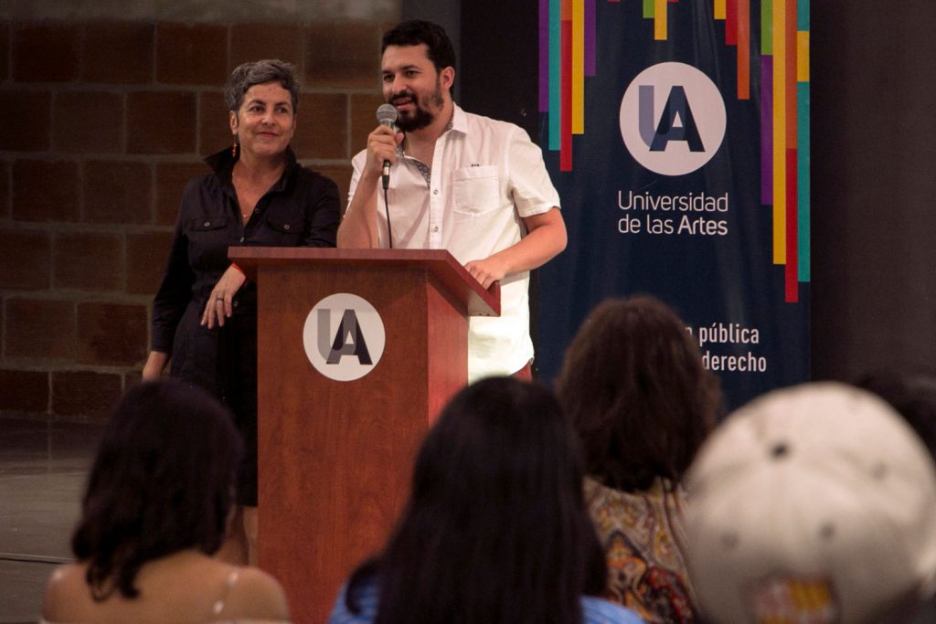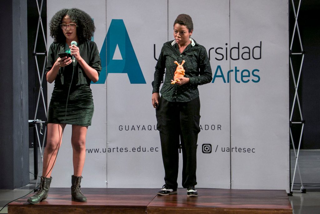 Lo poético continuó en el encuentro y se procedió a leer el acta del II Concurso Nacional de Literatura libre Libro 2019, se comenzó con el tercer puesto: Andrea Alejandro Freire con su obra “Electra” de la UArtes y Andrea Rojas del Instituto Técnico Particular de Loja compartieron este lugar. El segundo premio fue para Lizbeth Alexandra Oña de Yachay con el texto “En Barro fundido”. Finalmente, el primer lugar se adjudicó a Yuliana Ortiz, estudiante de literatura de la UArtes con su obra “Bitácora de lo animal”, se entregaron seis menciones que al igual que los tres premios contarán con una publicación realizada por los alumnos del Taller de edición y creación El Hipopótamo. Maria Paulina Briones invitó a leer sus poemas a Yuliana y Andrea Alejandro, quienes perforaron la atención del público a través de sus propias búsquedas poéticas y voz/voces que nos invitaban a confrontarnos y a confrontarlas. La fiesta de Libre libro continúa.