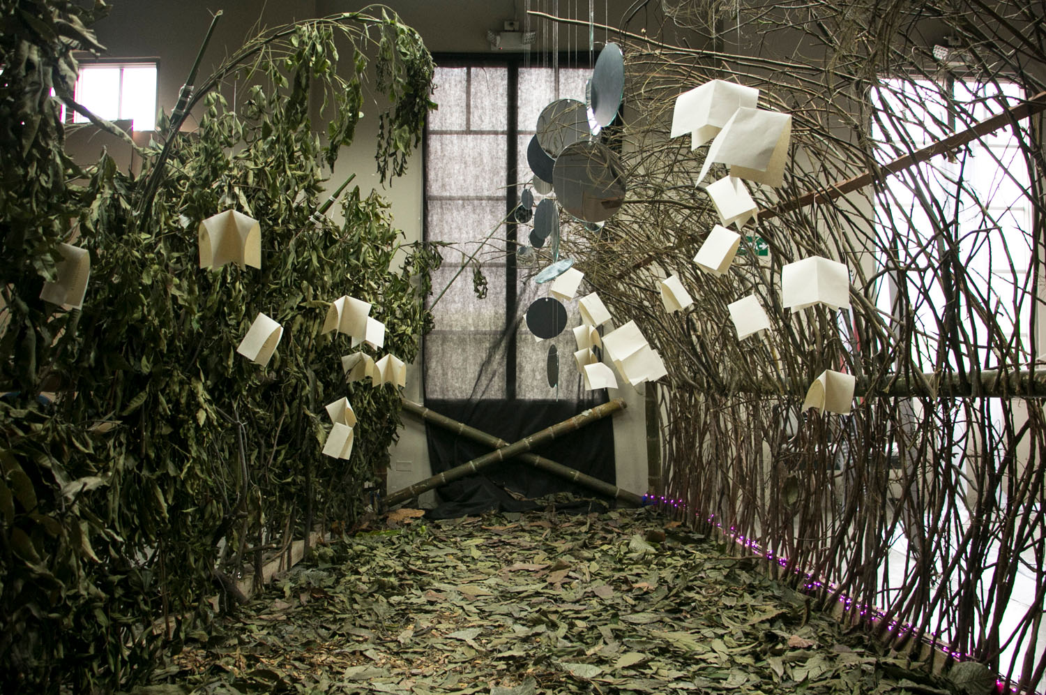 “Espejo de agua”, de Nicole Coronado, José Maldonado, Brenda Castillo y Bryan Almeida. Ellos realizaron la selección cuidadosa de poemas pertenecientes a cuatro poetas del simbolismo francés: Mallarmé, Verlaine, Rimbaud, Boudelaire, y a poetas ecuatorianos que han trasgredido el lenguaje, como Efraín Jara Idrovo, Fernando Artieda y Pedro Gil, para crear una instalación artística diseñada en forma de túnel, donde la selección de poemas funciona como un de juego de azar. Al concluir el recorrido el visitante puede registrar su visita mediante la composición un texto poético.