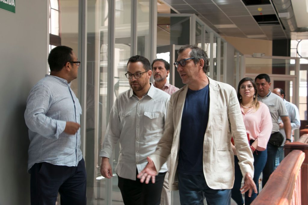 El recorrido siguió hacia el Centro de Investigación de la Fotografía, situado también en la planta baja, y concluyó en el primero de los cuatro pisos de la edificación, que antes fue la Bolsa de Valores. Allí, explicó Ibarra, se instalarán los estudios de producción.