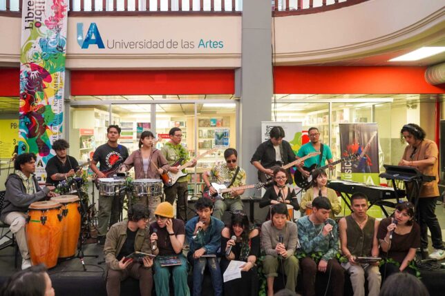 Zambrano destacó la participación de todas las escuelas de la UArtes en la cita e invitó al director de la Escuela de Artes Sonoras, doctor Andrey Astaiza, a sumarse al acto, puesto que fruto de ese trabajo conjunto hay contribuciones como las presentaciones del Ensamble Lúdico Experimental, que dirige el docente Toño Cepeda, y de la Rondalla Guayaquil.