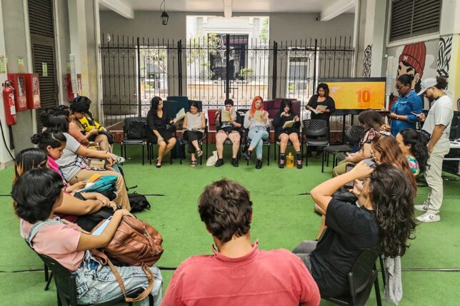 De 12:00 a 13:00, se desarrolló la lectura dramatizada “Ese momento de borrar mi nombre”, de María Josfina Viteri.