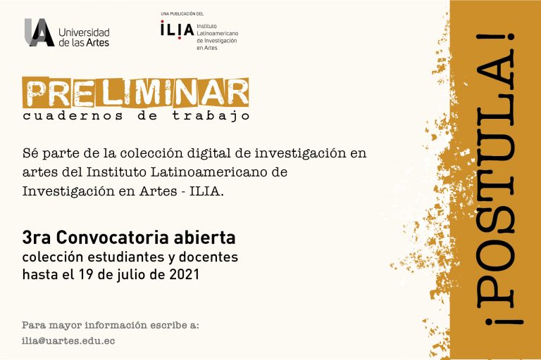 Preliminar: cuadernos de trabajo es una colección digital del ILIA que busca recopilar documentos de texto y proyectos artísticos de los/as estudiantes de la UArtes (pregrado, postgrado, egresados y graduados), a través de colecciones de estudiantes y colecciones curadas por docentes.